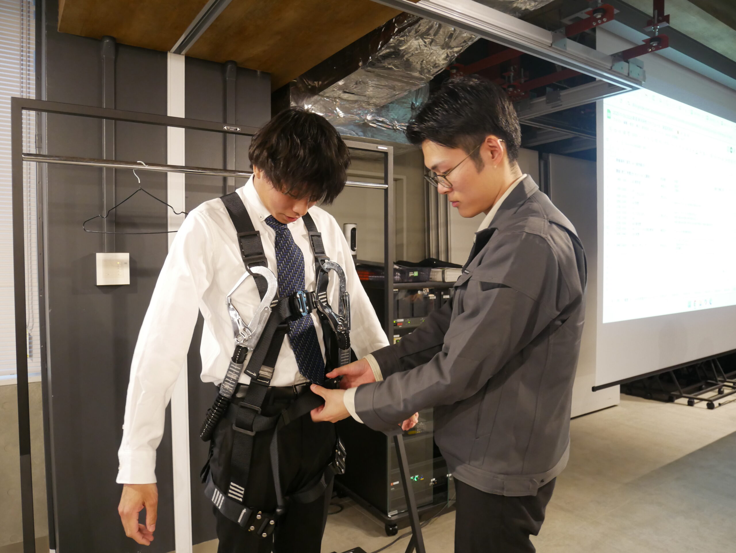 研修ではハーネスの仕組みや正しい装着方法などを習得しました!